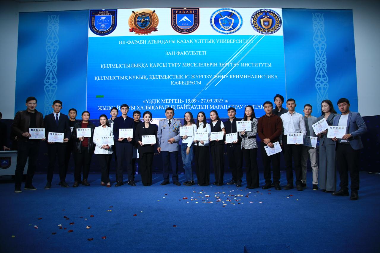 2025 jyldyng 5 jeltoqsanynda әl-Faraby atyndaghy Qazaq últtyq uniyversiytetining Ál-Faraby kitaphanasynda Zang fakulitetining Qylmystyq qúqyq, qylmystyq is jýrgizu jәne kriminalistika kafedrasynyng Qylmystylyqqa qarsy túru mәselelerin zertteu instituty men Sarapshy-kriminalist studenttik ghylymy ýiirmesining úiymdastyruymen halyqaralyq uniyversiytetaralyq dengeydegi “Ýzdik mergen” atty bayqaudyng marapattau rәsimi ótti.