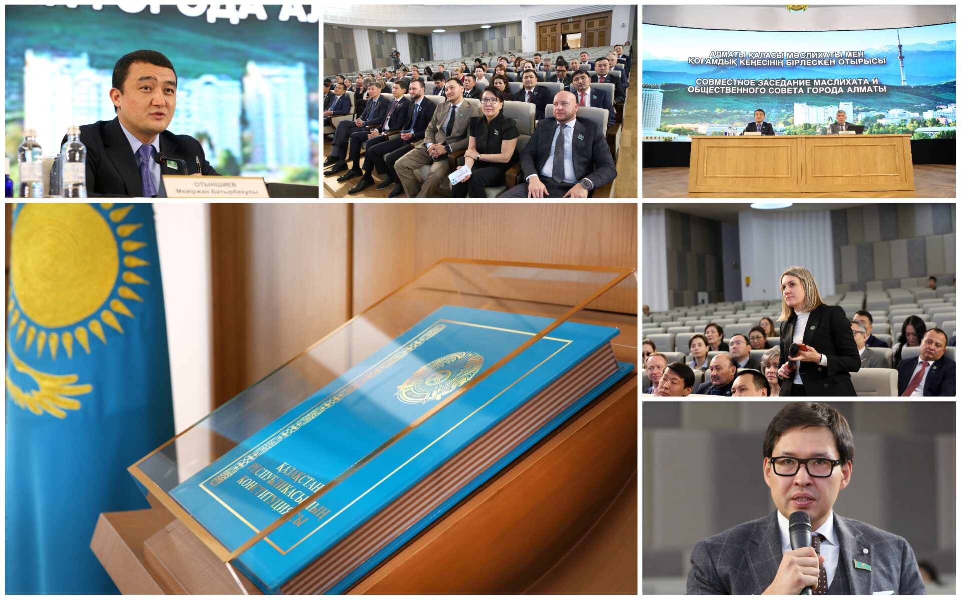 Almatyda Qazaqstan Respublikasy Konstitusiyasynyng jana redaksiyasynyng jobasyn talqylaugha arnalghan Almaty qalasy mәslihaty men Qoghamdyq kenesting birlesken otyrysy ótti. Is-sharagha mәslihat deputattary men Qoghamdyq kenes mýsheleri qatysty.