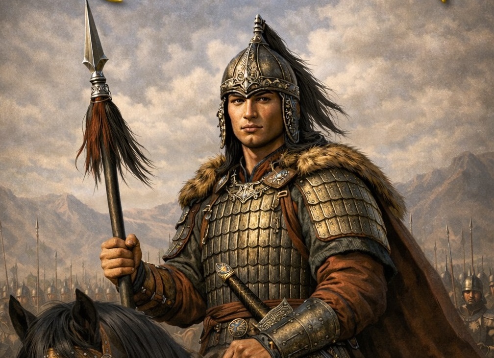 Jer-dýnie kókpenbek, masatyday qúlpyryp túr. Ótýkenning say-salasyn qualay esken samal, shópting basyn qytyqtaghanday, terbep- terbep qoyady. Arqan boyy kóterilgen kýnning ystyghy әzirge sezile qoymaghan. Sirә, keshe ghana ebil-debil qúiyp ótken nóserden bolar, auada jangha jayly salqyndyq bar.Tóbede túrghan, Qapaghan qaptaghan qalyng әskerding ishinen әldekimderdi izdegendey bolghan. Tapty. Úzyn nayzaly, kil qyl qara atty, jauar kýndey týnergen myndyqtardyng aldynda, jal qúiryghy kelisken esik pen tórdey at minip, bes qaruyn asynghan ýsheudi kórdi.
