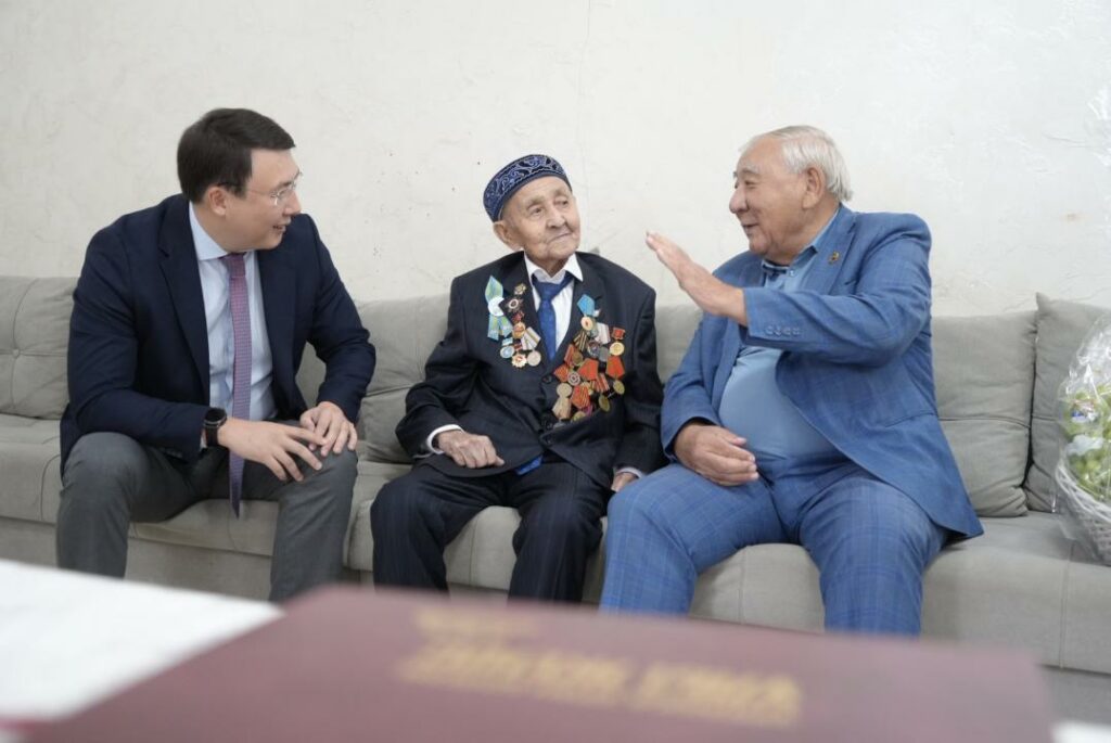 Ардагермен әңгімелесіп, мерекемен құттықтаған Диас Рахметұлы мен Ермек Әбілмәжінұлы құрметті қарияға Ұлы Жеңістің 80 жылдығына орай шығарылған «Ұрпаққа ұран болған Ұлы Жеңіс» кітабын, гүл шоғын және азық-түлік себетін сыйға тартты. 101 жастағы ардагер өзіне көрсетілген құрметке ризашылық білдіріп, ақ батасын арнады.