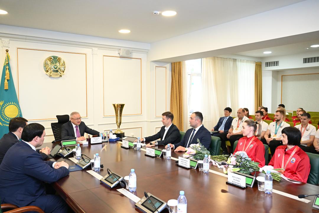 Бейбіт Исабаев елдің он дүркін чемпионы «Жетісу» волейбол командасының ойыншыларын қабылдады
