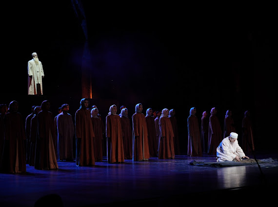 Экспозициядан кейін әке жоқтауын айтқан Гүллар - Калима Наушабаева мұңлы зардан гөрі, ащы айқайын басымырақ етеді. Дегенмен, Шәкәрімнің сүйегін әкеліп, арулап жерлеу рәсімінде хор орындайтын қыздардың басында орамал, ер азаматтарда тақия болуы сынды детальдерде режиссердің ішкі интеллектісі танылып отырды.