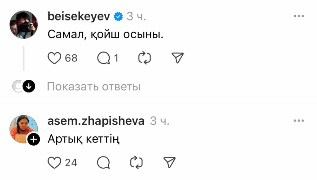 Алматылық журналист Әсем Жапышева да Самал Ибраеваның жазбасына берген түсініктемесінде мынадай пікір қалдырған: «Артық кеттің».
