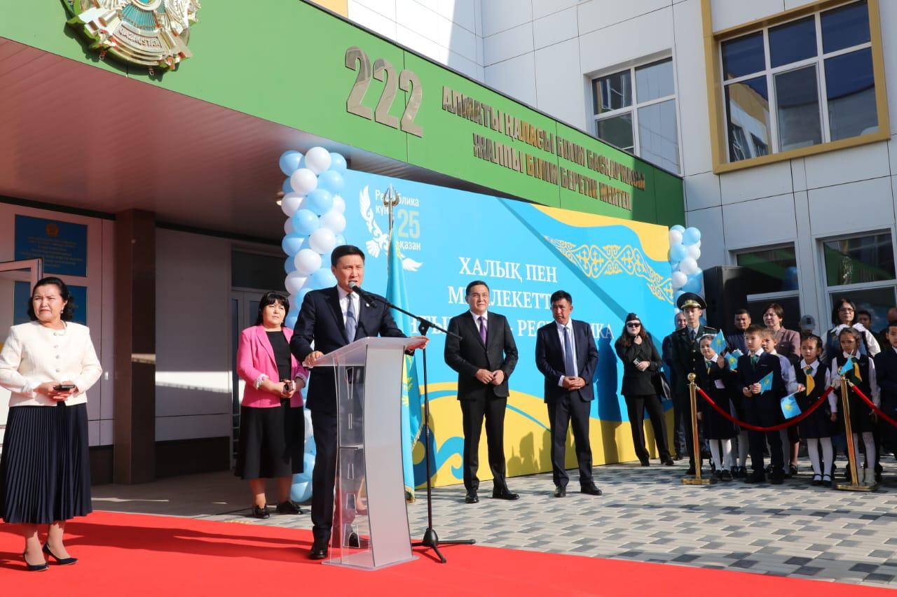Бұдан бөлек, Алатау ауданында орналасқан №222 жалпы білім беретін мектеп те ашылады. Білім ордасында 2 мың оқушы орнын қамтитын 96 оқу кабинеті бар. Бүгінде 700 оқушы қабылданды. 1-сыныпқа 41 бала қабылданған. Білім беру үдерісін 44 педагог жүргізеді.