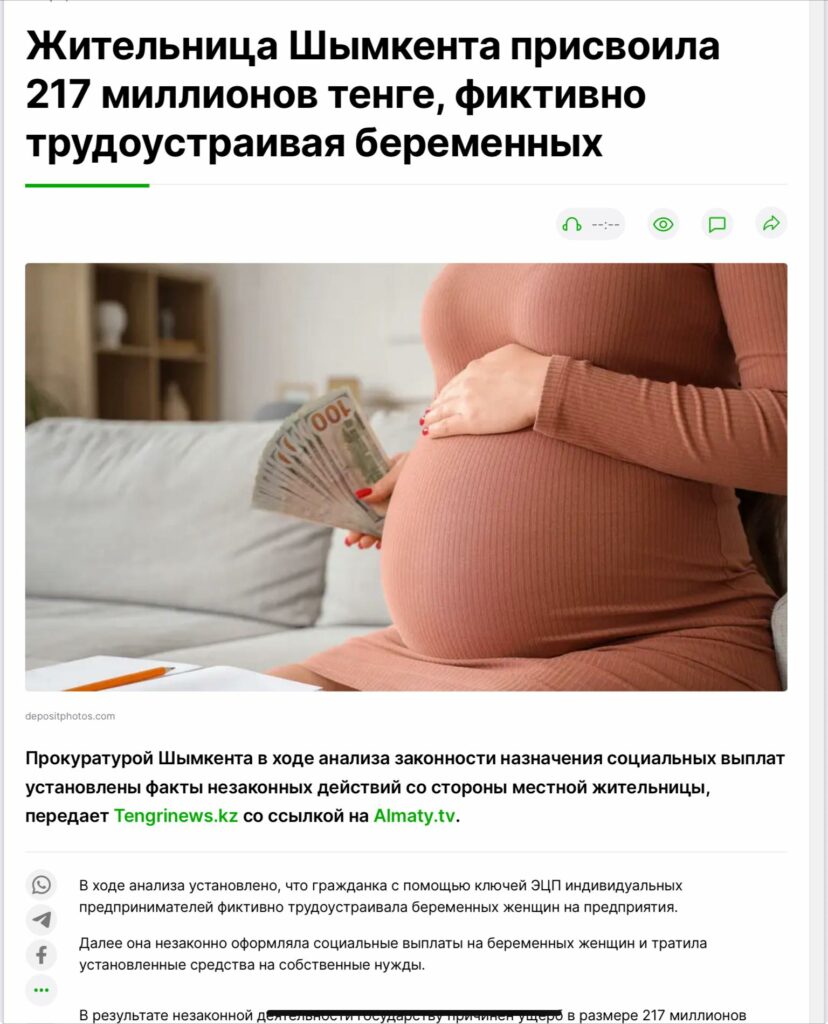 Кеше ғана Шымкентте жалған жұмысқа орналастыру арқылы жүкті әйелдердің атына әлеуметтік төлемдерді заңсыз алу схемасы әшкереленді.