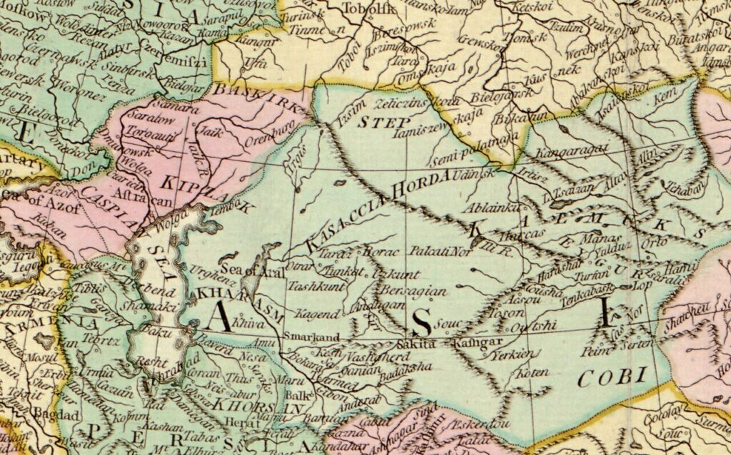"Kasaccia Horda" (Kazakh Khanate) on a British world map (1780)( https://ru.wikipedia.org.