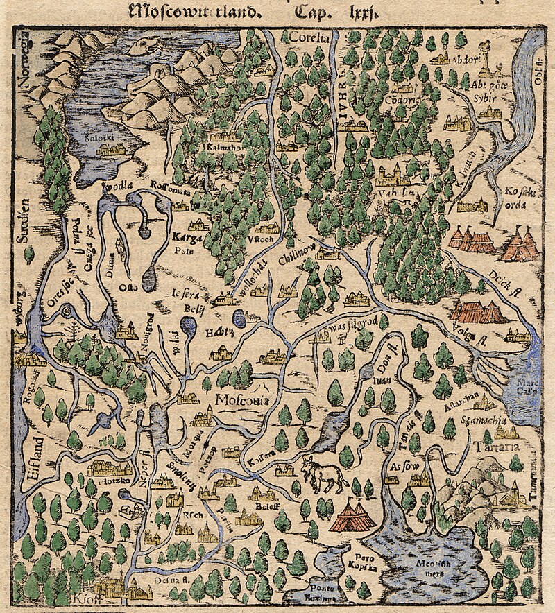 XVI ғасырдың 60-шы жылдары жарық көрген Себастьян Мюнстердің картасындағы Қазақ Ордасы (Kosaki Orda). wikipedia.org.