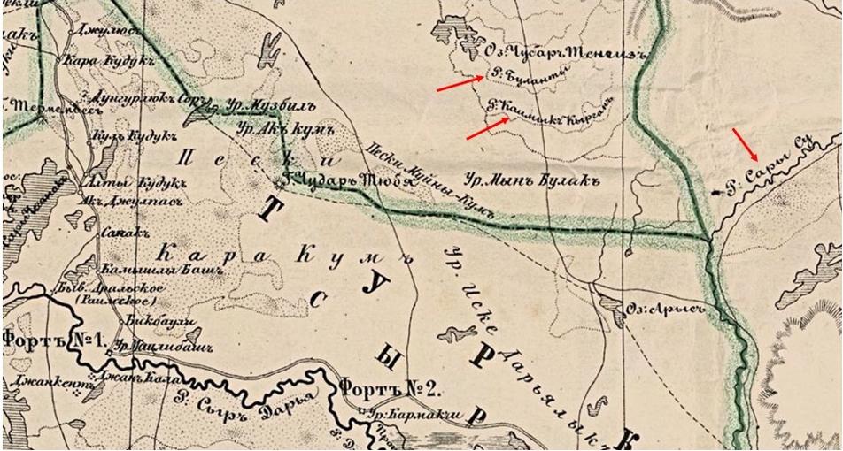 Аталған картада Арал теңізінің солтүстігінде орналасқан Қарақұм қонысы деген белгі бар (сурет 2). Қазақтың жалпақ «Қарақұмындағы» кішкентай Қарақұм қонысы.