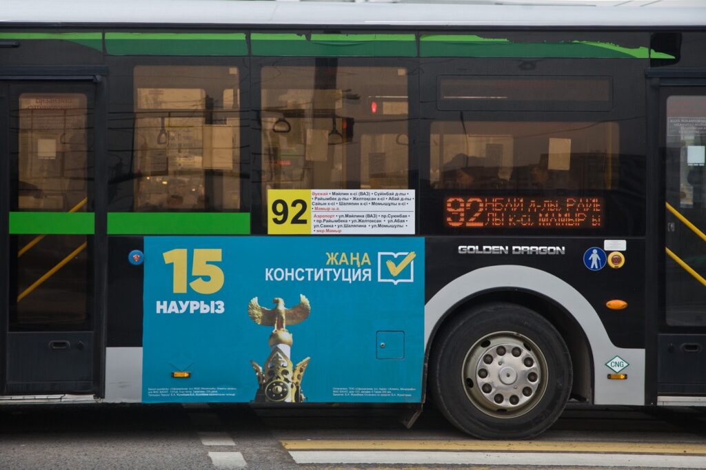 Информационная кампания охватила всю городскую инфраструктуру: билборды, LED-экраны, медиафасады зданий, баннеры на переходах, а также агитационные материалы в метро, автобусах, торговых центрах, аэропорту и на железнодорожных вокзалах с аудиосопровождением. На телевышке Кок-Тобе транслируется ролик с обратным отсчетом до дня голосования.