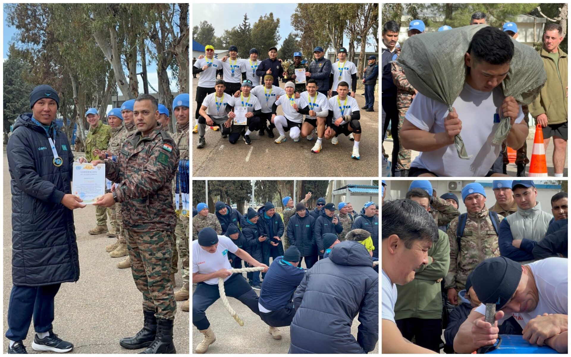 Сондай-ақ, Үндістан, Непал, Уругвай және Фиджи елдерінің бітімгерлік контингенттері қатысқан спорттық жарыстар да тартысты өрбіді. Кедергілер жолағымен эстафета, арқан тарту, қол күресі, кір тасын көтеру сияқты сайыстарда біздің жігіттер жоғары деңгейдегі дене дайындығы мен ұйымшылдығын көрсетіп, бірінші орынға ие болды.