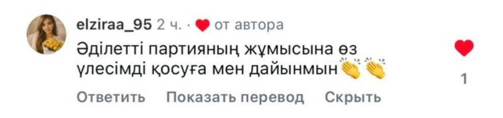 Жас қазақстандықтар «Әділет» партиясының әділ жолды ұстанбақ ниетін ерекше атап өтуде. Азаматтардың қалауы бір: өз ойын білдіріп жатқан көпшіліктің айтуынша, елге жаңа саяси мәдениет қажет, ал әділдік күнделікті тәжірибеге айналуы тиіс.