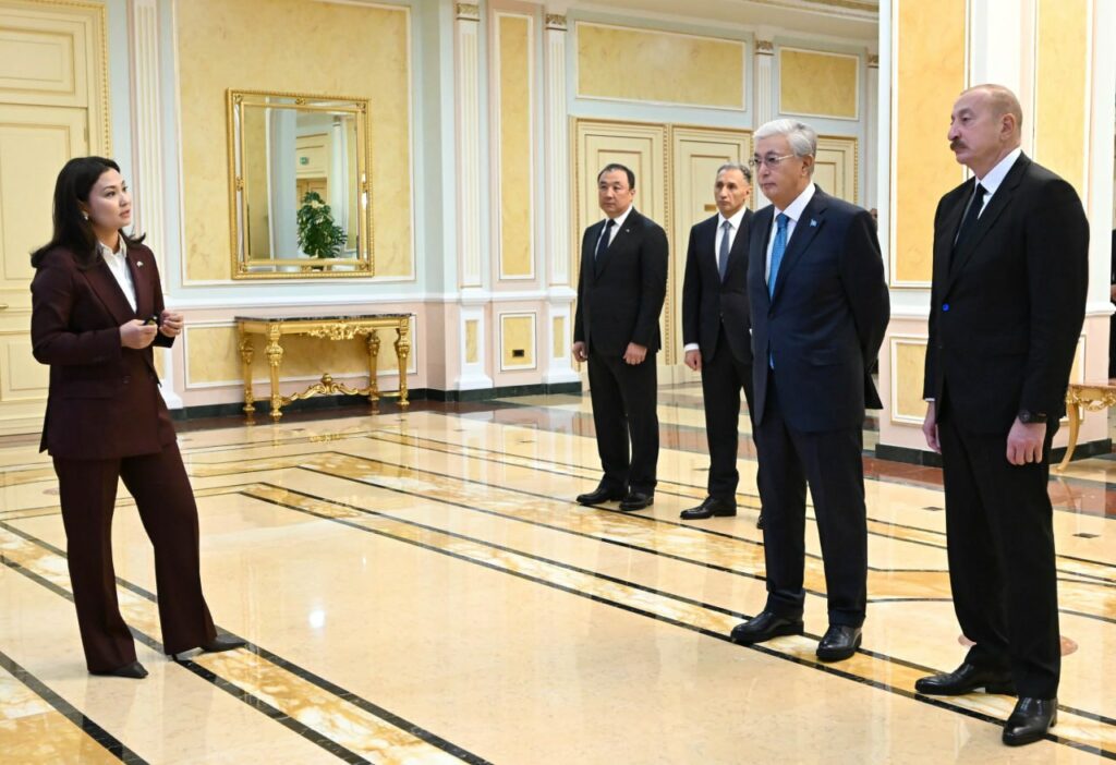 قاسىم-جومارت توقاەۆ پەن يلحام اليەۆ ءبىر-بىرىنە رەسمي دەلەگاتسيا مۇشەلەرىن تانىستىردى. قۇرمەت قاراۋىلى روتاسىنىڭ باستىعى مەملەكەتتەر باسشىلارىنا راپورت بەردى. بۇدان سوڭ ەكى ەلدىڭ ءانۇراندارى ورىندالدى. ونان ءارى مەملەكەت باسشىلارى كەلىسسوز جۇرگىزدى.
