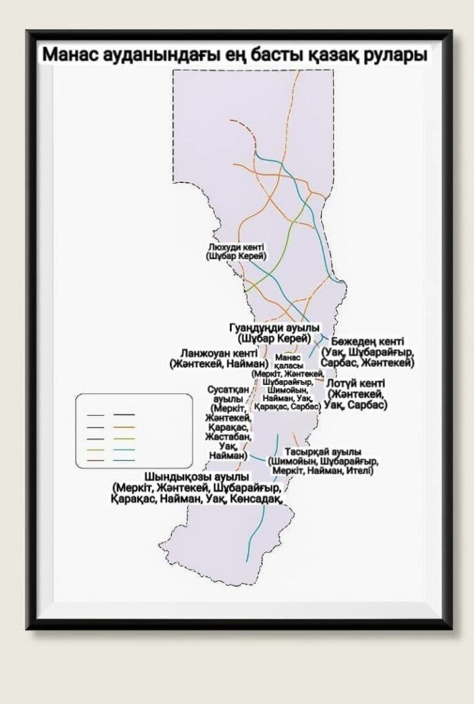 قازاق وتە از تۇراتىن لياڭجوۋحۋ، بيۋشا كەنتتەرىنە توقتالمادىق. ۇكىمەت ساناعى بويىنشا 2020 جىلى بۇل اۋداندا 19 مىڭ 51 قازاق بولعان. قورىتا كەلگەندە، ماناس اۋدانى قازاعىنىڭ 22 پايىزىن مەركىت رۋى، 21 پايىزىن جانتەكەي رۋى، 10 پايىزىن شۇبارايعىر رۋى، 9 پايىزىن شيمويىن رۋى ۇستايدى.