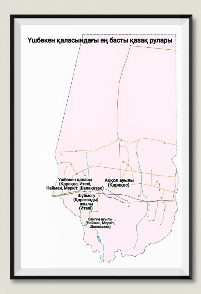 - ۋماچاڭ قازاق اۋىلىنا 4 ەلدى مەكەن قارايدى. ەڭ باستى رۋلارى – قاراقاس، سارباس.