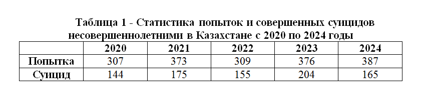 دليا كازاحستانا پروبلەما سۋيتسيدا سرەدي نەسوۆەرشەننولەتنيح وستاەتسيا چرەزۆىچاينو اكتۋالنوي. ستاتيستيچەسكيە داننىە ۋكازىۆايۋت نا ماسشتابنوست پروبلەمى ي نەوبحوديموست پرينياتيا بولەە رەشيتەلنىح مەر.