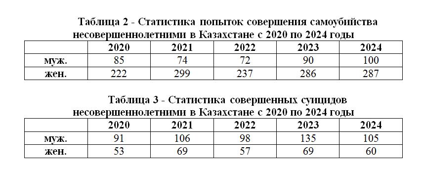 پروبلەمۋ سۋيتسيدا ۆ پودروستكوۆوي سرەدە تسەلەسووبرازنو رەشات كومپلەكسنو ي وبششيمي سيلامي ۆسەح پريچاستنىح ۋچرەجدەني. دليا ۆىياۆلەنيا نايبولەە ۋسپەشنوگو الگوريتما ۆزايمودەيستۆيا نەوبحوديمو راسسموترەت تو، چتو ۋستانوۆلەنو ۆ كازاحستانە نا داننىي مومەنت.