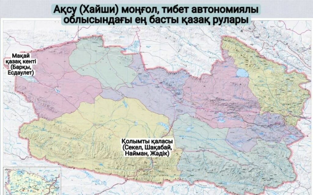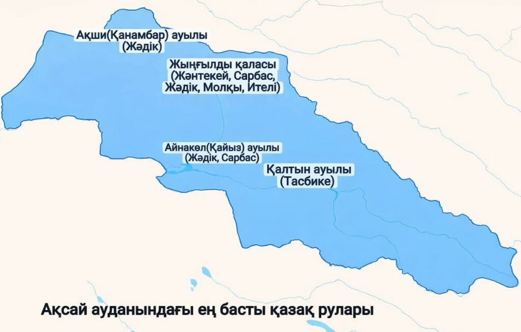 اقساي قازاق اۆتونوميالى اۋدانىنداعى ەڭ باستى قازاق رۋلارىنىڭ كارتاسى