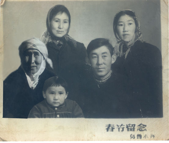 (سول جاقتا وتىرعان اجە ءشاجاري زاڭگىنىڭ بايبىشەسى ۇمىتقان ىبىرايىم قىزى، وڭ جاقتاعى زاڭگىنىڭ ۇلى قىزىر، ارتقى سول جاقتاعى زاڭگىنىڭ قىزى راشيدا قاسىموۆا، وڭ جاقتاعى قىزىردىڭ ايەلى نۇربيكە ابدىمولداقىزى، اجەسىنىڭ الدىندا وتىرعان كىشكەنتاي قىز راشيدا اپايدىڭ قىزى اقىلتاي. سۇرەت قىزىر اعانىڭ ۇيىندە ساقتاۋلى).