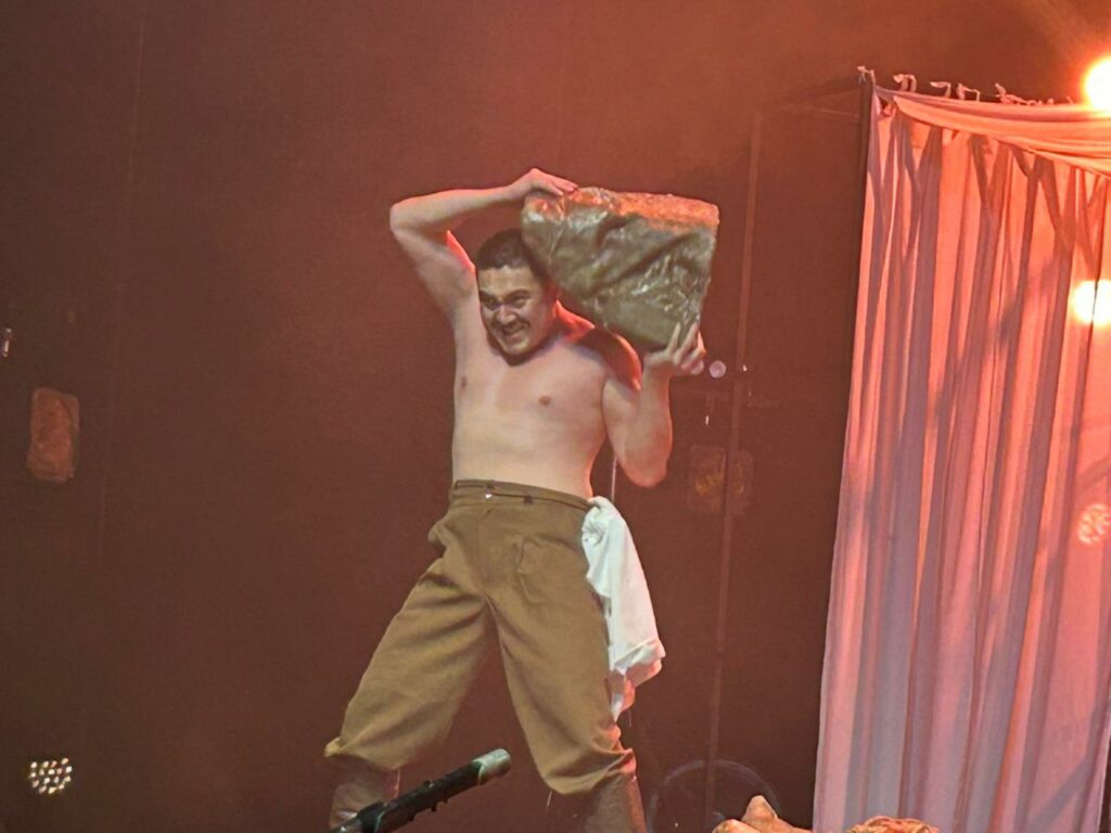 بۇل جاڭا تۋىندى — پالۋاننىڭ 155 جىلدىق مەرەيتويىنا وراي ۇسىنىلعان مۇلدەم بولەك كونتسەپتسياداعى ەڭبەك. دراماتۋرگتەر ناۋرىزباي اسىلبەك پەن قازىبەك امانجولدىڭ پەساسى نەگىزىندە ساحنالانعان بۇل قويىلىمدا رەجيسسەر اقنيەت جاقسىعالي ءداستۇرلى ومىرباياندىق درامانىڭ شەڭبەرىنەن شىعىپ، سينتەتيكالىق تەاتر ەستەتيكاسىنا جۇگىنگەن. بۇل قويىلىم — جاي عانا تاريحي شەجىرە ەمەس، زاماناۋي ستسەنوگرافيالىق شەشىمدەر مەن يممەرسيۆتى تاسىلدەر ارقىلى كورەرمەنمەن تىكەلەي بايلانىس ورناتقان ينتەراكتيۆتى ساحنالىق شوۋ. ءبىزدىڭ پايىمداۋىمىزشا، رەجيسسەردىڭ باستى ماقساتى — قاجىمۇقاندى تەك «الىپ كۇش يەسى» رەتىندە عانا ەمەس، ونىڭ ىشكى تراگەدياسىن، نامىسىن جانە ادامدىق بولمىسىن تسيرك ارەناسى مەن دراما ساحناسىنىڭ ترانسفورماتسياسى ارقىلى اشۋ بولعان. قويىلىمنىڭ العاشقى مينۋتتارىنان باستاپ-اق اتموسفەرانىڭ سەرپىندىلىگى مەن اكتەرلەردىڭ فيزيكالىق دايىندىعى تەاترتانۋشى ماماندار ءۇشىن دە، قاتارداعى كورەرمەن ءۇشىن دە جاڭا ەستەتيكالىق اسەر سىيلادى.